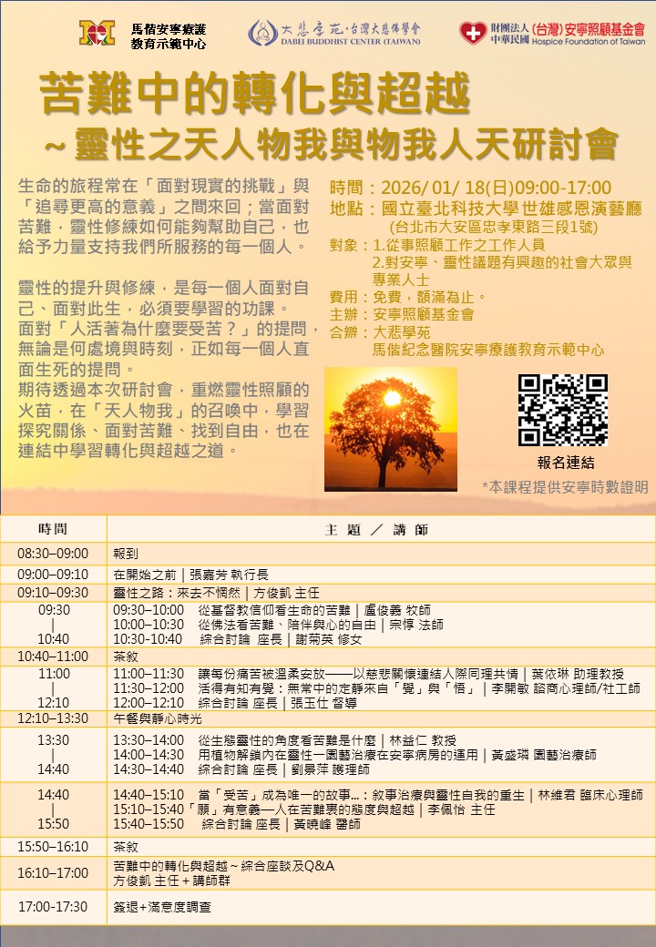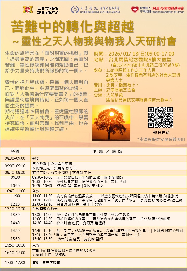 《合辦單位》 馬偕安寧療護教育示範中心、大悲學苑