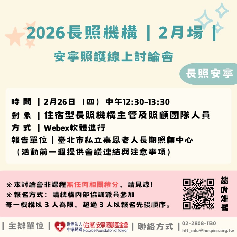 匙一口之間,是愛還是負擔-機構安寧的新課題」,歡迎一同參與,把