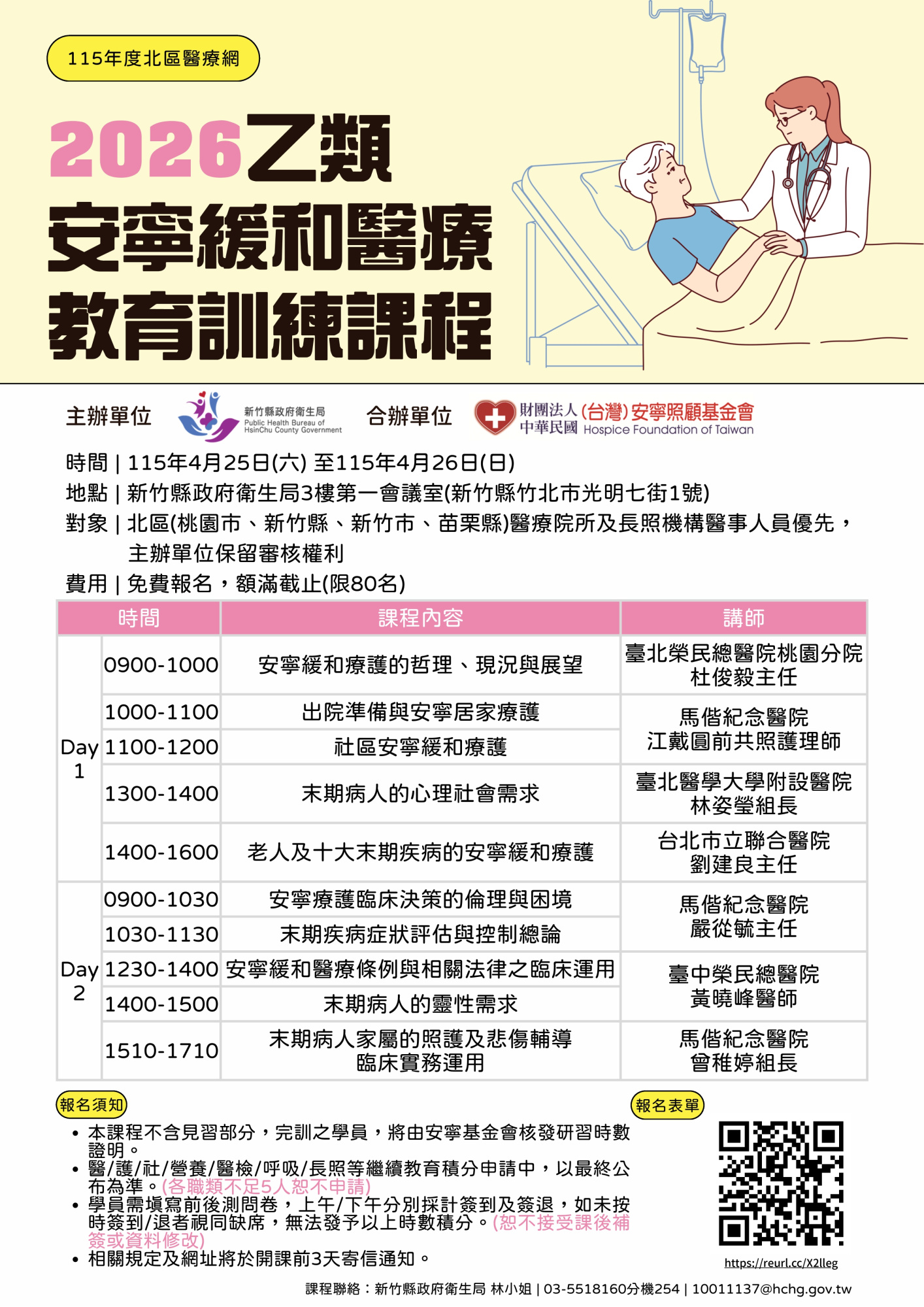 - 北區(桃園市、新竹縣、新竹市、苗栗縣)醫療院所及長照機構醫事人員優先,主辦單位保留審核權利