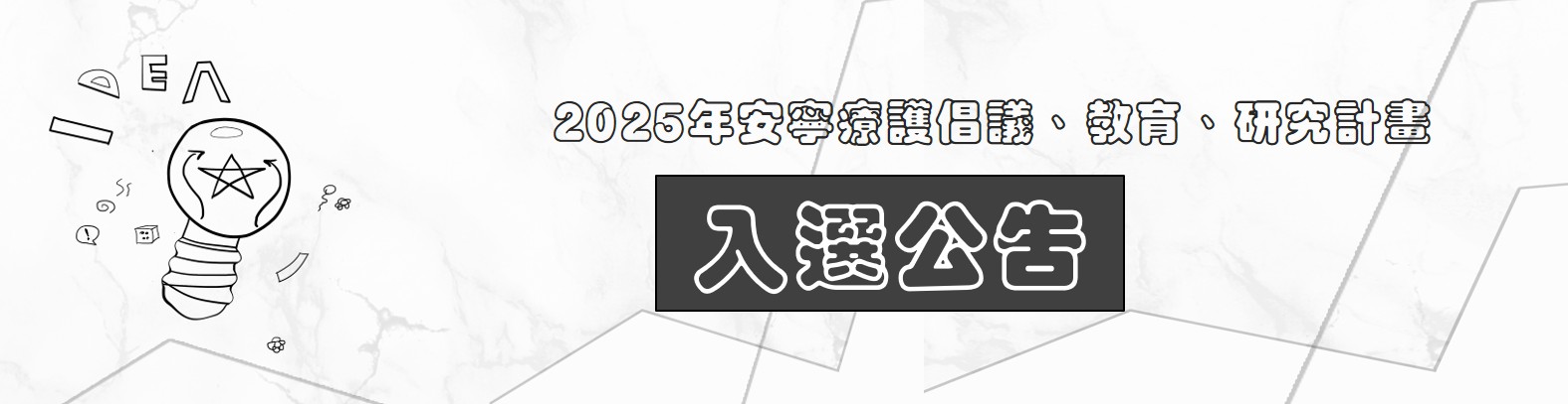 安寧照顧基金會為鼓勵合約機構專任人員,投入末期病患及家屬的安寧照護工作,提供合約機構專任人員倡議、教育及研究經費補助,誠摯感謝所有參加今年度徵件活動的安寧夥伴!