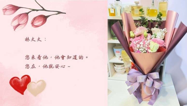 結縭一生(50年),太太來和病人道別,是一個很溫柔很美的畫面,我們想應該要有花吧~