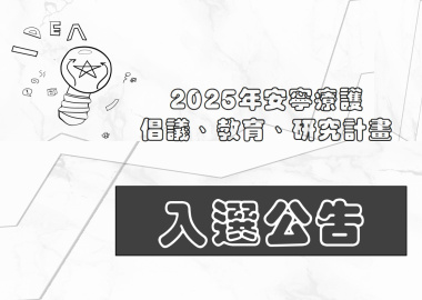 安寧照顧基金會為鼓勵合約機構專任人員,投入末期病患及家屬的安寧照護工作,提供合約機構專任人員倡議、教育及研究經費補助,誠摯感謝所有參加今年度徵件活動的安寧夥伴!